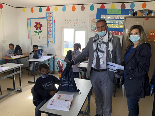 إضافة الى ذلك قام المركز وبحضور مدير التربية والتعليم في محافظة أريحا والأغوار الدكتور عزمي بلاونة، بتوزيع حقائب نظافة وتعقيم على كافة طالبات وطلاب مدرسة بدو الكعابنة وعددهم (81 طالبة وطالب)، كذلك رزم نظافة وتعقيم متكاملة خاصة بالمدرسة ومرافقها العامة والصحية.