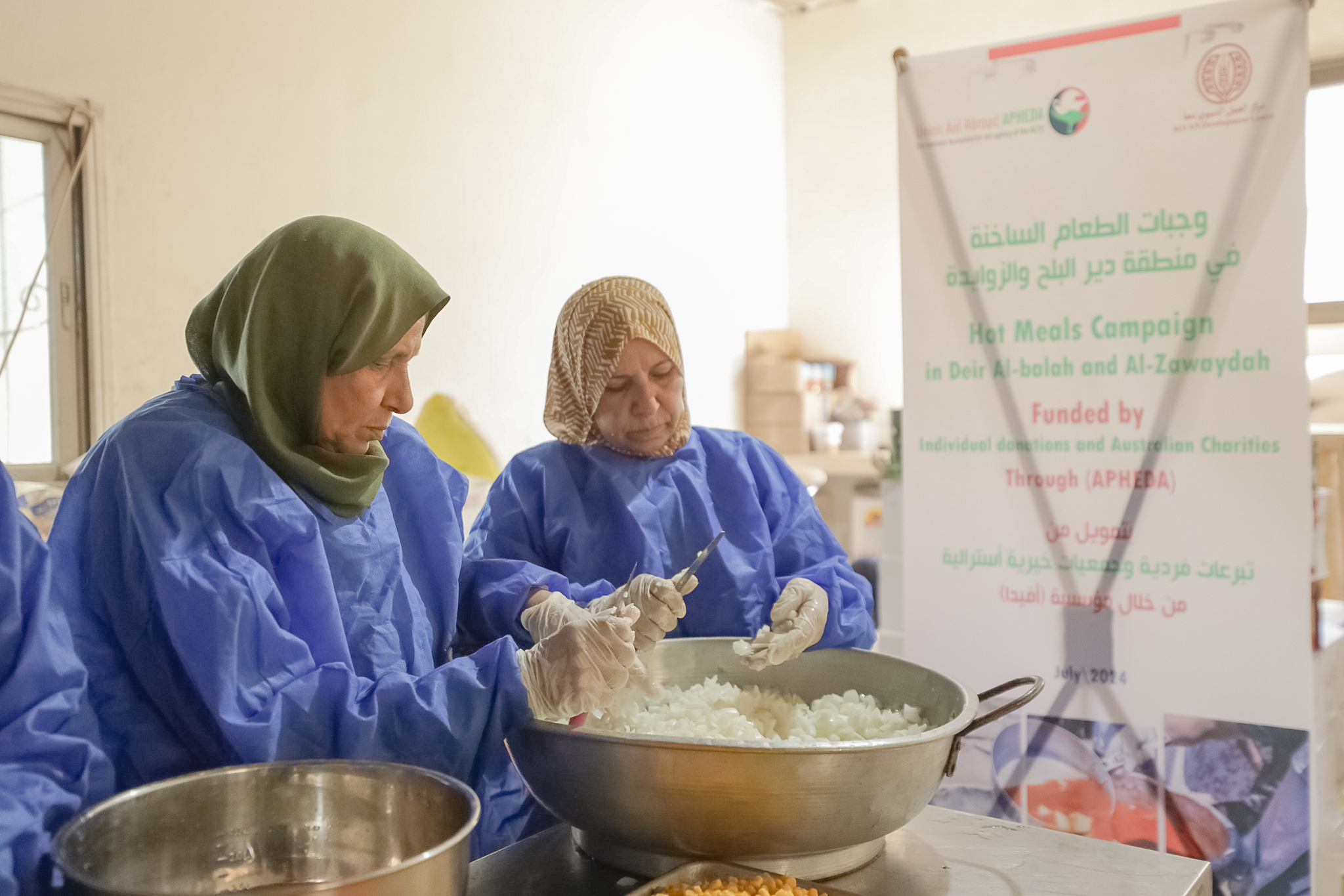 توزيع وجبات طعام ساخنة في دير البلح والزوايدة