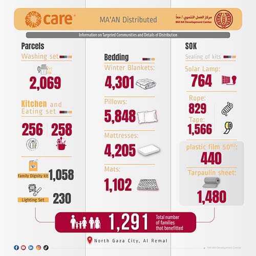 "معًا" توزّع مساعدات إنسانية لـ1,291 عائلة متضررة في غزة بدعم من مؤسسة CARE