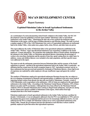 Exploited Palestinian Labor in Israeli Agricultural Settlements in the Jordan Valley