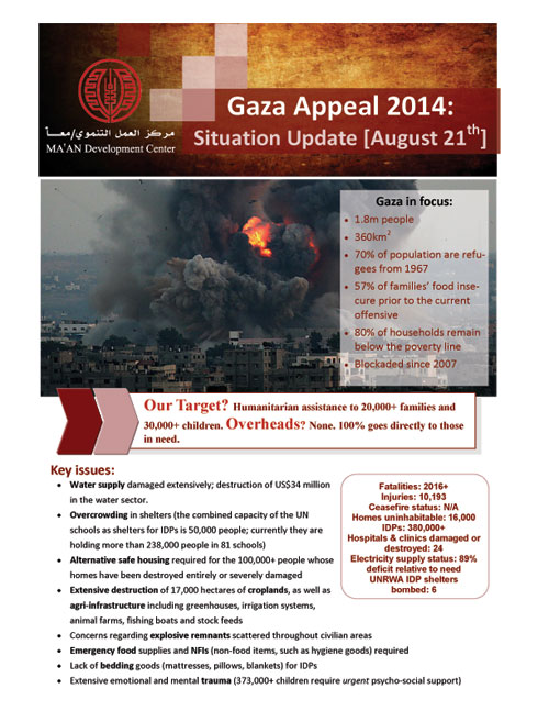MA'AN updated appeal and humanitarian interventions until 20 August, 2014