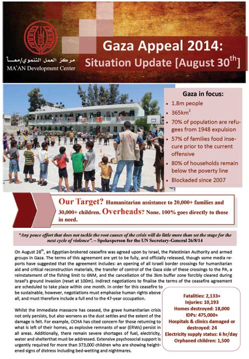 MA'AN updated appeal and humanitarian interventions until 30 August, 2014