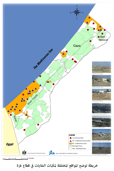 إن من أكثر الأمور التي زادت الوضع تعقيداً ما خلفه الاحتلال من كم هائل من نفايات بلدية خلال العقود الأخيرة ومخلفات الهدم الناتجة عن تدمير المستوطنات، ومنازل المواطنين، في مناطق متفرقة وعديدة في القطاع وخصوصاً الشريط الحدودي.