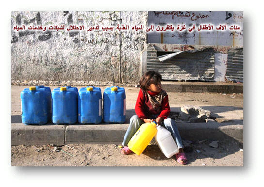 الموارد والأموال. كما توقفت أعمال جمع النفايات الصلبة، وأدى النقص الكبير في الوقود وتدمير خطوط الطاقة الكهربائية في مدينة غزة، أثناء العدوان، إلى انهيار خدمات المياه كليا، مما أثر صحيا وبيئيا بشكل مفزع على أكثر من 600 ألف مواطن، طيلة فترة الحرب (23 يوما). وفي بعض المناطق، مثل وادي السلقا (المحافظة الوسطى) وعبسان وخزاعة والفخاري (محافظة خانيونس) وشوكة (محافظة رفح)، دمرت خزانات وشبكات المياه والأراضي الزراعية تدميرا كاملا. وبسبب الازدحام , ,وانعدام المياه النظيفة الخدمات الصحية, تفشي وباء "القمل" والجرب في العديد من احياء مدينة غزة |