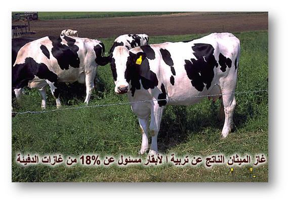 في الجهاز الهضمي للبقر مسئول عن نحو 18% من كمية غازات الدفيئة