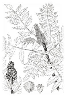 غدية، وتحوي بذرة واحدة، ويزهر السماق في بداية الصيف وتنضج ثماره في
