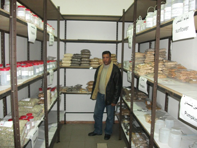 يقول: "أطلقنا البنك في تشرين ثاني العام الماضي، بعد جهود سابقة شملت محافظات الوطن، وبدأنا عام 1992، في جمع عشرات الأصناف من البذور البلدية، التي يتهددها خطر الانقراض، وتنافسها البذور المُهجنة، ولا زلنا نُكثر الأصول البلدية، بعدما اجتاحت الأسواق مثيلاتها المعدلة جنياً ووراثياً".
