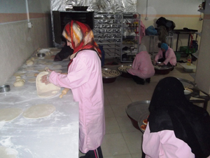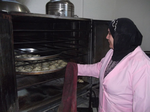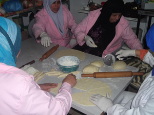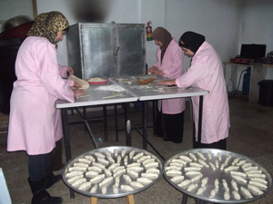 غزيات في تعاونية نسائية يعكفن على إنتاج المعجنات |
