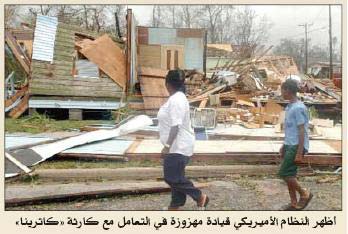 ويعود رفض واشنطن التوقيع على بروتوكولات كيوتو، على هشاشتها، إلى حرصها على تأمين المصالح الاحتكارية للرأسماليين الذين يمتلكون قدرات كبيرة على التأثير في القرارات السياسية الأميركية. وقد أوضحت في حينه، صحيفة "الفايننشال تايمز"، أن الإدارة الأميركية لم تهتم بتطوير البنى التحتية والموانع الطبيعية التي كانت تقف أمام الفيضانات والأعاصير في جنوب شرق لويزيانا وبحيرة "بونتشارترين"، بل، ومنذ عام 2003، حولت الأموال المخصصة لمشروع السيطرة على الفيضانات في المناطق الريفية إلى العراق، وخفضت الموازنة المخصصة للفيضانات ومواجهتها من 70 مليون دولار إلى 30 مليوناً، علما بأن صحف “نيوأورليانز” كانت قد حذرت في عدة تقارير، من أن الحرب في العراق هي على حساب موازنة مكافحة الأعاصير والفيضانات، وعلى حساب موازنة الحفاظ على مناعات الميناء في المدينة. ولمواجهة المقاومة العراقية، نقلت الإدارة الأميركية عناصر الاحتياط في الحرس الوطني، من المدينة التي نكبها الإعصار إلى العراق؛ وبالتالي لم يكن ممكنا الاستفادة منهم في عمليات الإغاثة وإنقاذ الناجين من الإعصار وبالسرعة القصوى. |