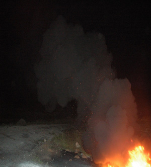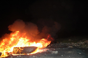 عمليات حرق الإطارات التي تتم بالغالب ليلا |