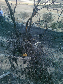 بفعل حرق الأسلاك البلاستيكية أشجار الزيتون تحرق |