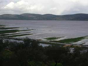سهل صانور الذي تحول بفعل الأمطار إلى بحيرة.