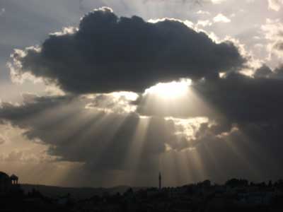 غيوم وشمس في اتحاد يشكل لوحة في سماء جنين.