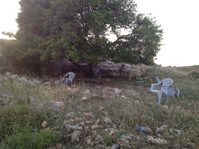 شجرة البلوط المقدسة التابعة لمزار الولي شيبان قطعت وحرقت اثناء عملية الترميم |