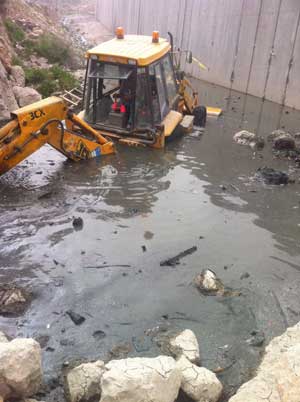 أسرة أبو كويك تحاول تنظيف عبارة الجدار العنصري بعض الشيء لتقليل المياه العادمة