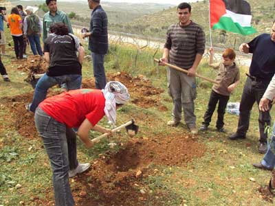 مجموعة من متطوعي شراكة يزرعون الأشجار عند الجدار الفاصل في يوم الأرض |