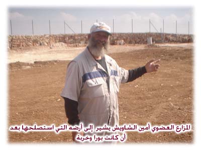 يقول، وهو يشير بيده إلى المساحات التي نجح في إقناع أصحابها باستصلاحها: أنظروا هناك العنب والزيتون والدراق والقمح، وشاهدوا بعيونكم الجدران الاستنادية والمساحات الجديدة، وقارنوها بالأراضي التي لا زالت وعرة، لتكتشفوا الفرق، ولتحكموا بأنفسكم أن هذا دفاع عن أرضنا. تمكن الشاويش الذي تكسو وجهه لحية بيضاء طويلة، ويرتدي ملابس العمل معظم وقته من استصلاح ستين دونماً له ولجيرانه؛ فنظف الصخور، وبنا بنفسه وبمساعدة الشبان مصطفى ومحمد ومعتصم جدران استنادية، وغرس أشجار الزيتون، وأقنع الكثيرين الاهتمام بأرضهم، لحمايتها من المصادرة، وربّى الأغنام، وزرع الحنطة، واهتم بزراعة الخضار العضوية. يروي: لما توفي جدي تركت أرضناً بوراً لأكثر من عشر سنوات، وهذا أثر فيّ، فصممت أن أعيد لحقل جدي الحياة، وهو ما قمت به بالفعل. يقول: كانت أرض جارنا حسان الطويل مهملة، لكنني أقنعته بالرجوع إليها، وبالفعل صارت تنتج عشر تنكات من الزيت، بعد أن كانت بوراً. التجأ الشاويش من دون جدوى لوزارة الزراعة ومؤسسات واتحادات تعنى بالأرض والفلاحين، لكنه ذهل من أجوبة سمعها من رسميين، ومفادها: "في البيرة ليس هناك مزارعون، ولهذا فلا نستطيع أن نساعد!". تعتبر أعمال استصلاح الأرض مكلفة، فهي تكلف نحو عشرة آلاف شيقل للدونم الواحد، وتحتاج لمجهود هائل، ووقت طويل، لكنها برأي الشاويش ممتعة، ويكفي فقط أن تقف على بعد منها لتشاهدها جنة خضراء وسط صخور وطرق التفافية ومستعمرات للاحتلال.
