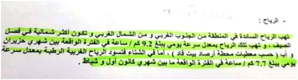 اتجاه الرياح في منطقة الدراسة غربية، وكلنا يعرف بأن أن الرياح تهب من هذا الاتجاه، ما يعني أن أبخرة صهر المعادن من مدخنة المصنع تتجه من الغرب إلى الشرق حيث تقع القرية القائم عليها المصنع.