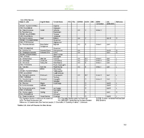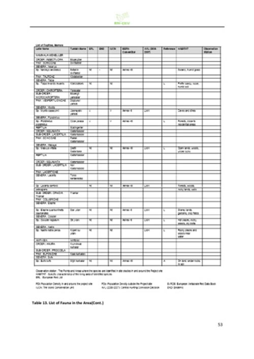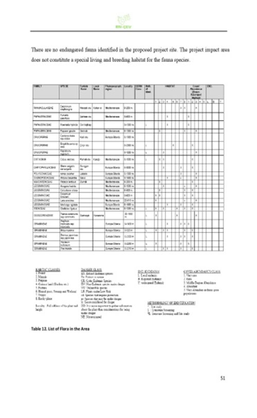 كما تظهر الصفحات من 51-53 من ذات الدراسة جدولا كاملا بأنواع النباتات والحيوانات المتواجدة في المنطقة وإمكانية تعرضها للخطر.