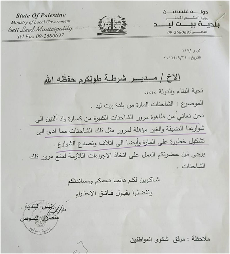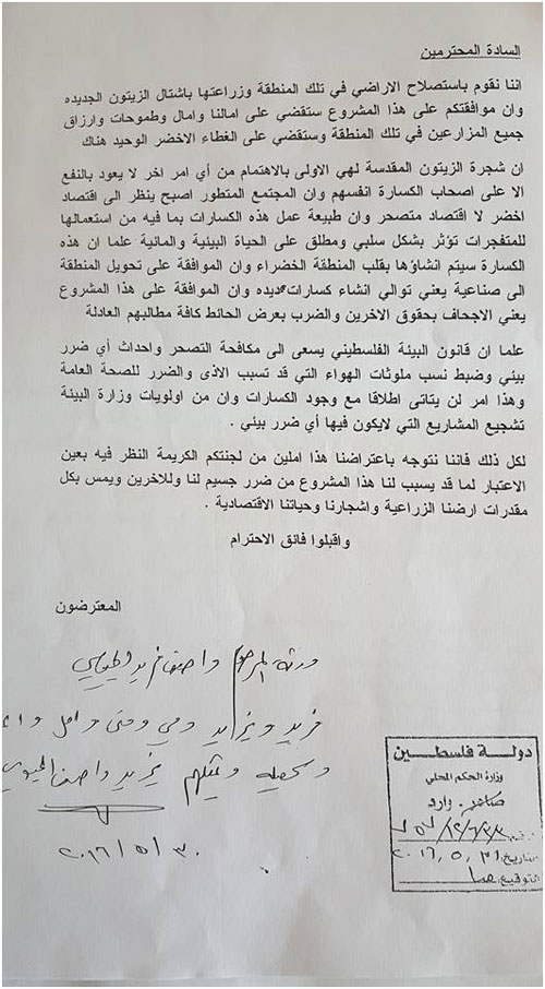 الدراسة الثانية مصنع للإسفلت في محافظة جنين