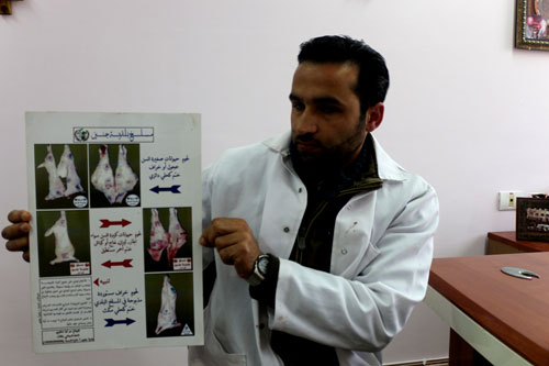 وقال: "لا تتم الرقابة البيطرية إلا على ما يذبح داخل المسلخ، الذي يمتلك قدرة لذبح نحو 50 عجلاّ و150 خاروفًا يوميًا. لكن هذا لا يحدث بالرغم من وجود قانون "ليس مُطبقًا على الجميع، إذ تنحصر الرقابة على ما يذبح في المسلخ فقط، والأمر ينطبق على الدواجن".