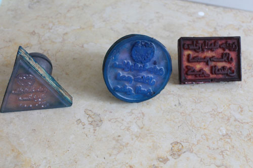 | أختام المسلخ ثلاثة أنواع الدائرة الكحلية والمثلث الكحلي والمستطيل الأحمر |