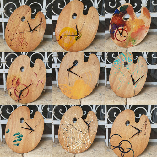 | تحويل ألواح الرسم الزيتي إلى ساعات حائط وأفكار بيئية أخرى في مؤسسة حوش الفن الفلسطيني بالقدس |