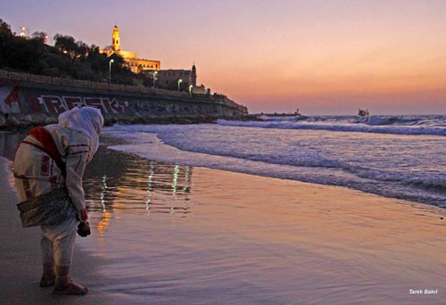 | الحاجة حليمة تقف لأول مرة أمام بحر قريتها التي احتلها الصهاينة عام 1948 |