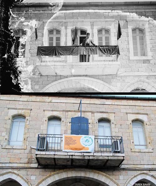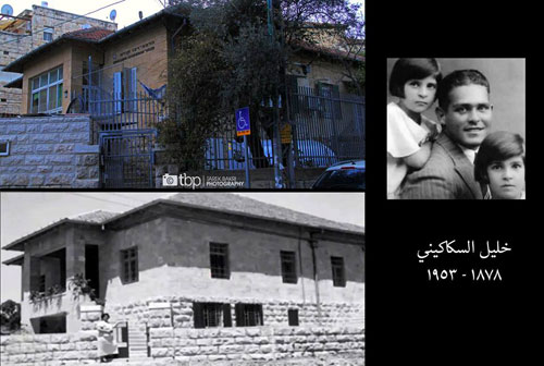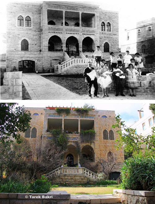 منزل الأديب خليل السكاكيني قبل احتلاله عام 1948 (الصورة السفلى) وكما يبدو اليوم (الصورة العليا) |