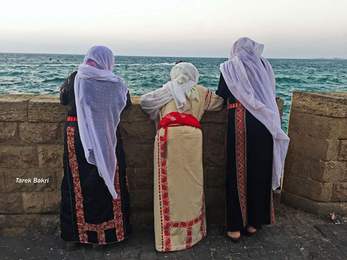 | الحاجة حليمة أمام بحر قريتها قضاء الرملة في فلسطين المحتلة عام 1948 |