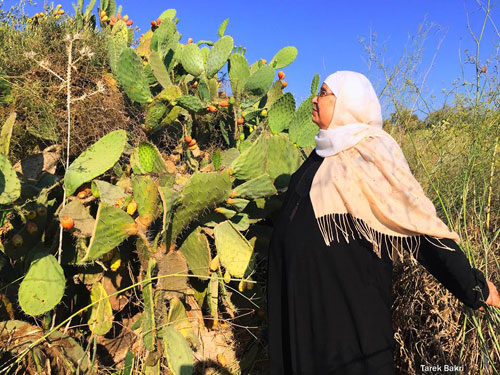 نعمة شقديح على أنقاض قريتها المحتلة عام 1948 |