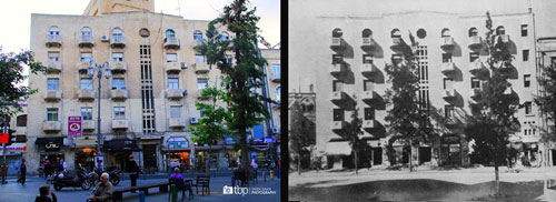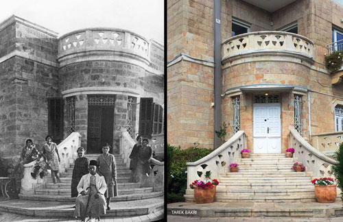 | بناية عائلة طنوس في القدس المحتلة عام 1942 (يمين) بقيت على حالها حتى يومنا هذا (يسار) |