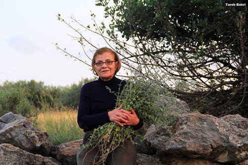 سارة أبو عجيمة تحمل هدية الزعتر من قريتها التي احتلت عام 1948 |