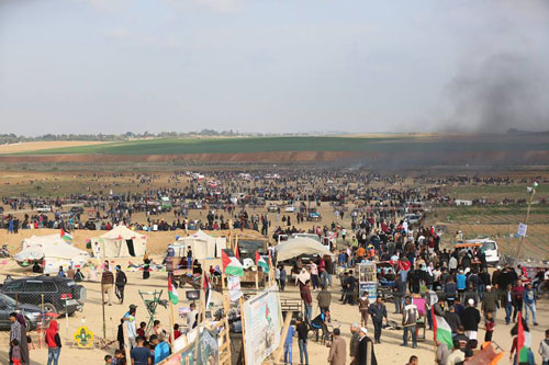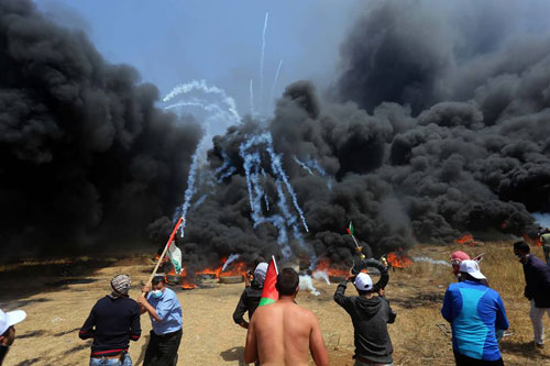 الغازات السامة الإسرائيلية تنهمر على آلاف المتظاهرين في مسيرات العودة بغزة