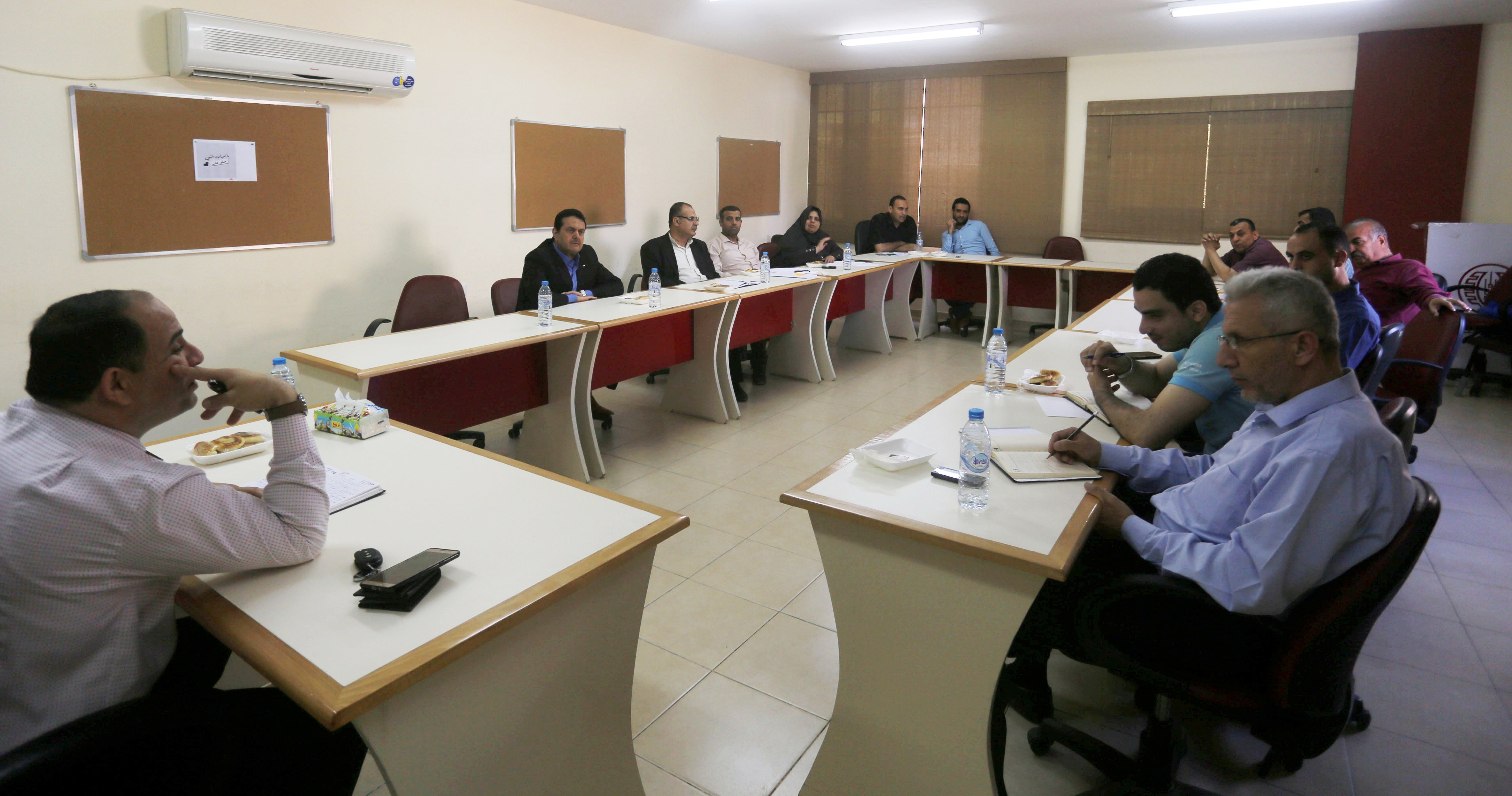 جانب من المشاركين في الندوة الحوارية حول انعكاسات الواقع الاقتصادي المنهار على بنية البيئة في قطاع غزة