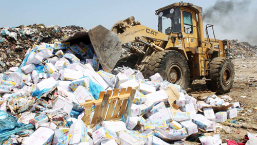 | إتلاف الأغذية الفاسدة التي تم جمعها في السوق الفلسطيني |