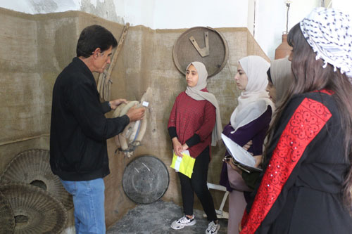 زهرات يستمعن لشرح حول أدوات لحرف وصناعات يدوية تراثية