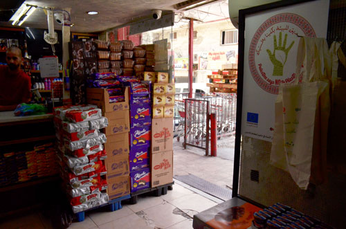 | بقالة تستخدم الأكياس القطنية المصنعة في مخيم شعفاط |