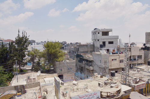 | مخيم شعفاط عبارة عن مساحات اسمنتية متلاصقة تخلو تقريبا من البقع الخضراء |
