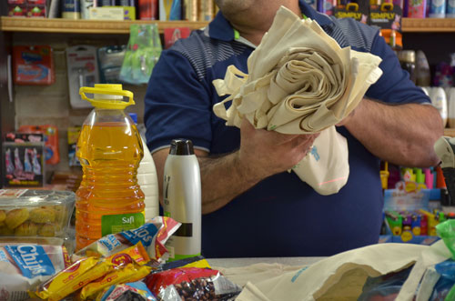 بعض المحلات في مخيم شعفاط تغلف السلع بأكياس قطنية |