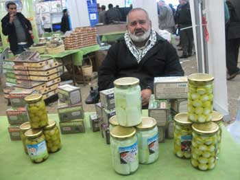 الحاج سامي صادق فوق كرسي الإعاقة يعرض منتجات قريته الصغيرة جدا العقبة والمهددة بالاقتلاع من قبل الاحتلال