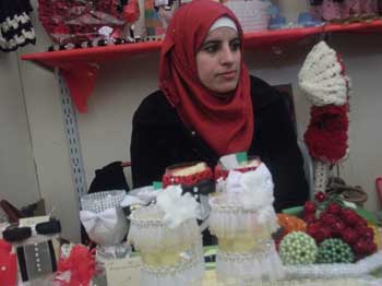 تنثر ربيحة نوري بني عودة الناشطة في المركز النسوي الاجتماعي بطمون، وهي تقدم للزائرين عينة من منتجات تراثية ومصنوعات غذائية لعشرات المتطوعات، همومها، فتقول: إن الأشغال اليدوية في طوباس والأغوار تعاني مشكلة التسويق، التي تقصم ظهرها، ولا تشفع لها المعارض في الحصول على زبائن، فيما تواجه النساء أوضاعاً اقتصادية صعبة.