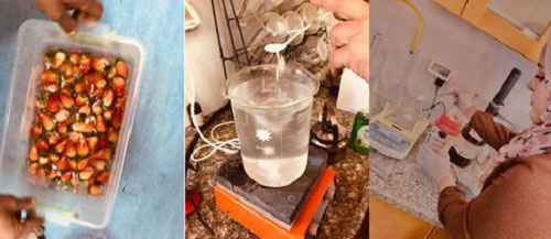 سألناها عن المعايير التي يجب تحققها في الفراولة استعدادًا لتنفيذ التجربة، فقالت: "المحصول يجب أن يتوفر في وقت باكر، ويخضع للتجربة في اليوم نفسه حتى لا يَفقد خصائصه، وثمة شروط يجب أن تنطبق على الفراولة، من حيث الحلاوة والحموضة والصلابة والوزن، وكذلك النضوج الذي لا يفترض أن يكون تامًا، على أن يكون المذاق حلوًا بوضوح".