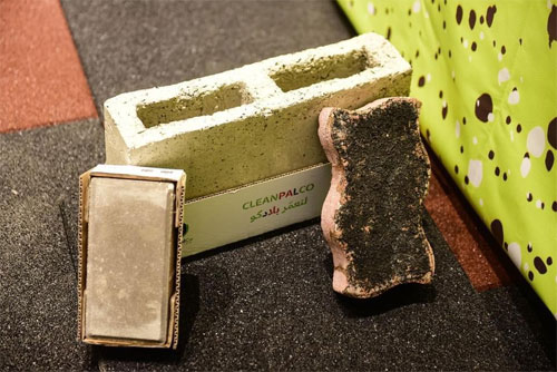طوب أنتجته الشركة الطلابية من إعادة تدوير ربو الحجر وكاوتشوك السيارات