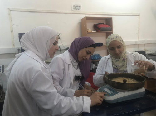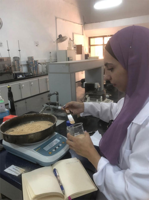 طالبة في الشركة الطلابية تبحث مخبريا في إعادة تدوير الملوثات |