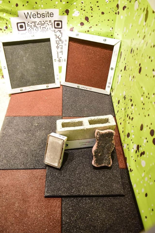 بلاط مطاطي وطوب أنتجته الشركة الطلابية من إعادة تدوير ربو الحجر والكاوتشوك