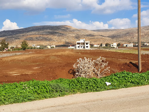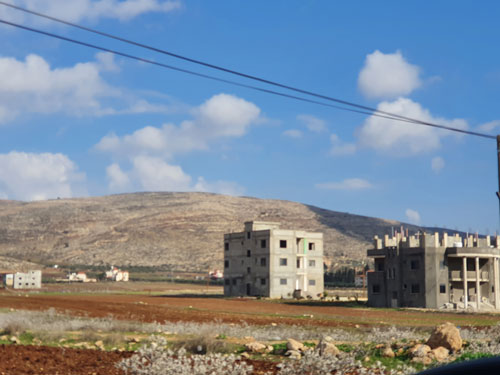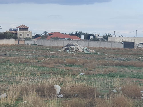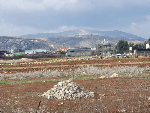 البناء والمخلفات في سهل بيت فوريك وفي الخلفية جبال جرداء