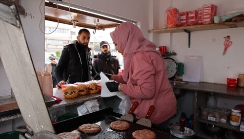 أماني شعث في مشروعها الخاص- كشك لبيع البرجر على شاطئ غزة