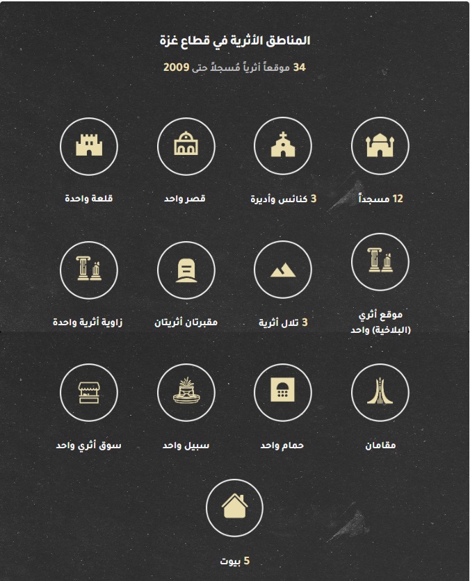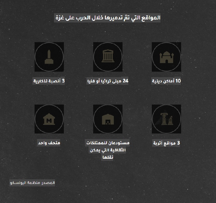 يضم قطاع غزة -الذي يقع على مساحة 360 كيلومتراً مربعاً- عشرات المواقع الأثرية. وخلال الحرب التي شنتها إسرائيل على القطاع في السابع من تشرين الأول/أكتوبر 2023؛ استهدفت الصواريخ والقذائف 43 موقعاً أثرياً وثقافياً، وفق رصد منظمة الأمم المتحدة للتربية والعلم والثقافة - اليونسكو.