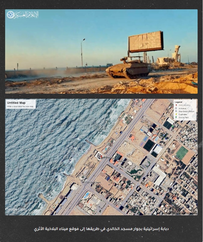 فيديو آخر بثه الجيش الإسرائيلي، يُظهر توافد الدبابات عند مدخل مخيم الشاطئ؛ ما يعني أنها مرت على موقع البلاخية قبل وصولها تخوم المخيم.